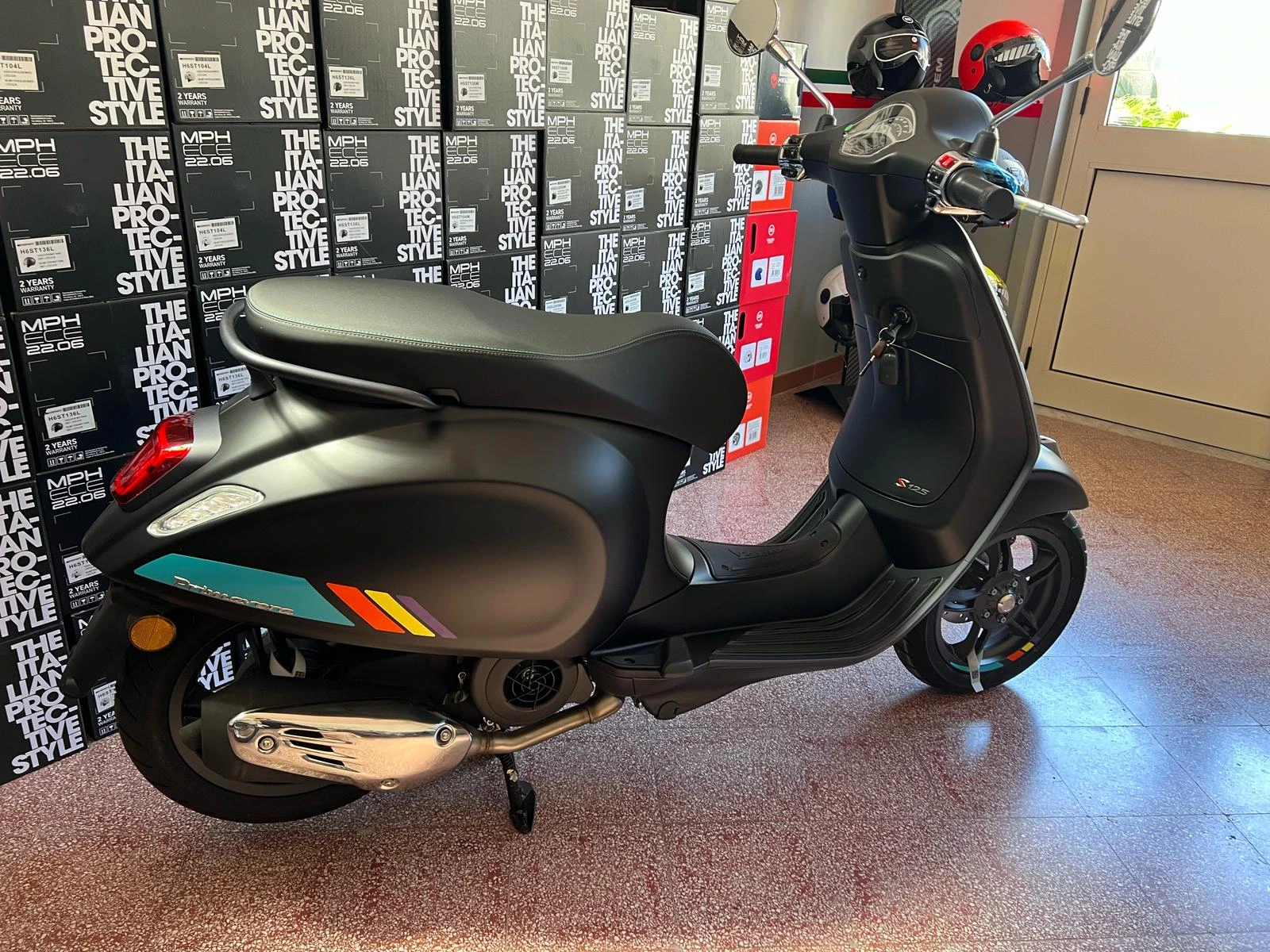 Caschi, abbigliamento, ricambi: tutto ciò che serve è disponibile in sede.